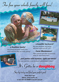 Doughboy's target audience is women between the age 35-48 with children who own a home. Ad was place in women's magazines: Home and Pool & Spa Living.
