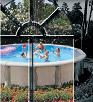 The concept was for mom to look through her window to see a beautiful backyard with a Doughboy pool.