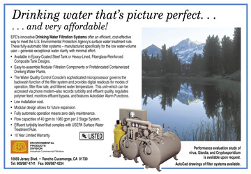 Target Audience: Rural municipalities or companies working with the cities to find a cost effective solution to drinking water filtration needs. Ad was placed in Drinking Water and Municipal trade magazines.