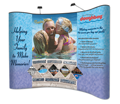 This pop-up display is used by Doughboy at small trade shows and dealer meetings. It is available for dealers to either purchase or rent for their home shows.